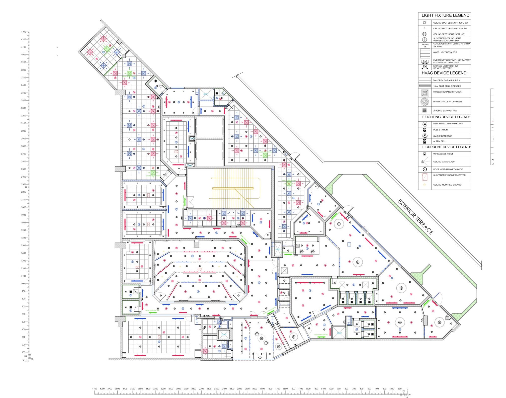 Floor plans, furniture layouts, RCP, lighting/power layouts, basic HVAC, water supply & drainage.